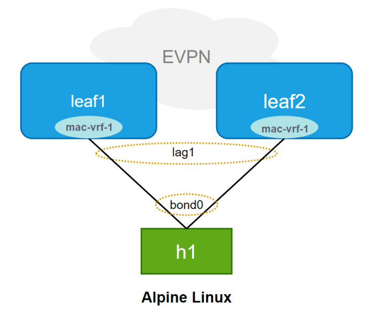 Until here, it is quite similar to a local link aggregation of any vendor. At this point, we’ll create an ethernet segment for leaf1 and leaf2 to sync for this LAG.